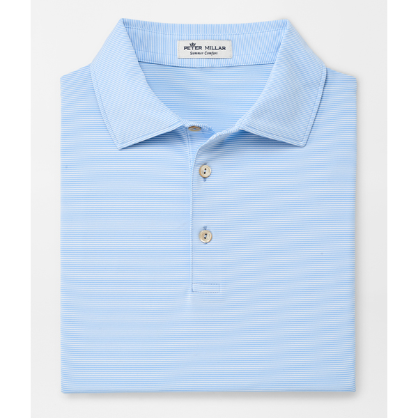 The Jubilee stripe polo is made from our signature stretch jersey fabric. The properties of this fabric offer four-way stretch, moisture-wicking, quick-dry, odor control, easy-care and UPF 50+ sun protection. Styled with Sean self-fabric collar and three-button placket.