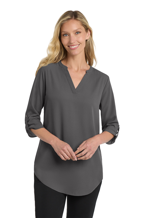 Transition seamlessly from professional life to play in this comfortable and flattering tunic blouse.